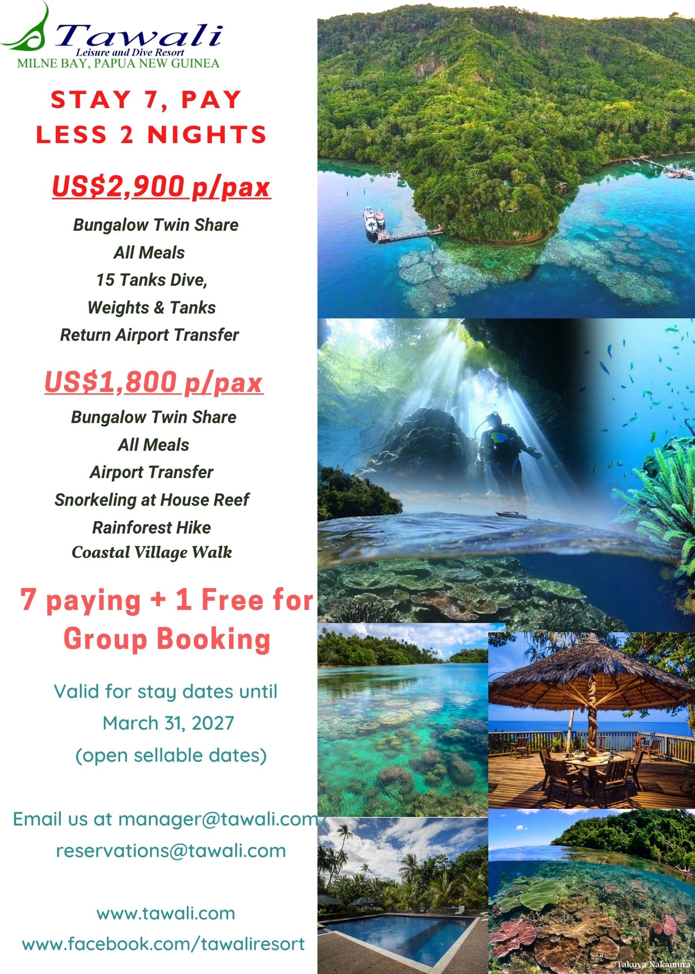 STAY 7 NIGHTS, PAY LESS 2 NIGHTS for only US$1,800 per person ( stay dates until Mar. 31, 2027)